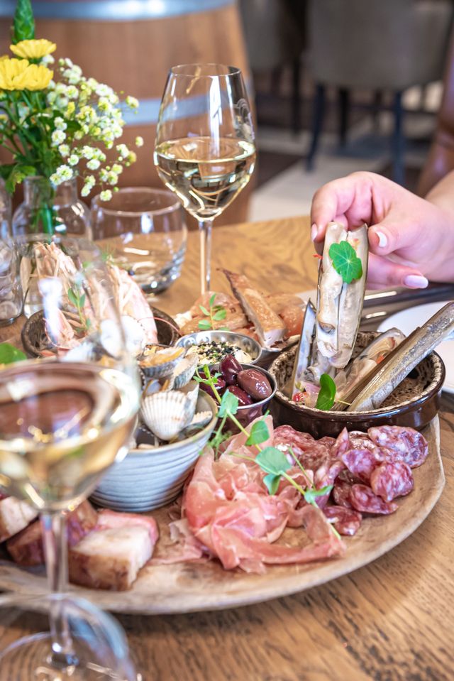 Op het terrein vind je alles voor een compleet dagje uit of een ontspannen vakantie. In het proeflokaal kun je genieten van heerlijke gerechten die perfect samengaan met de eigen wijnen van De Kleine Schorre. Denk hierbij aan schaal- en scheldieren en vis die heerlijk combineren met de frisse zilte Zeeuwse wijnen. Het is de plek waar lokale smaken en wijnbeleving samenkomen!